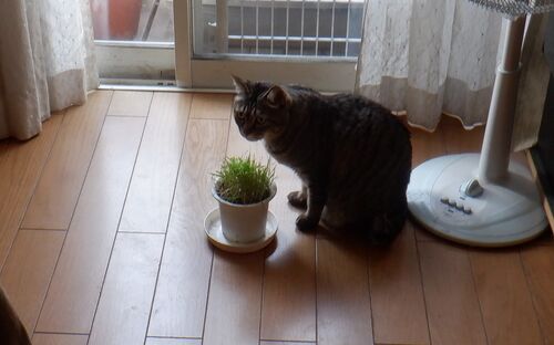 最近 アルの吐き戻し回数が増えています。 胃の調子がよくないみたいで もう貧弱になった猫草の前でじっとしていたかと思うと 観葉植物を漁っていたりします。 有毒なミルクブッシュの枝が何本も落ちていたので、 さてはアルが食べたのではと、2階の部屋に隔…