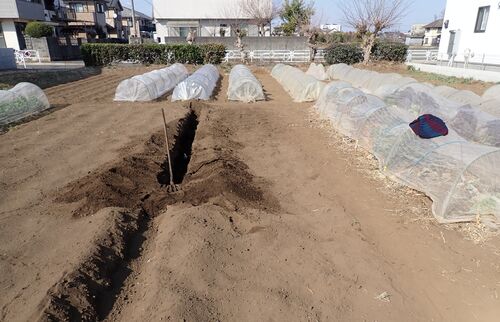 今日の気温はひと桁。北風も強かったので 体感温度はかなり寒いです 立川の畑だと凍えてしまいそうなので、今日は入間の畑に行きました ここは昔、多摩川が流れていて 左側にできた河岸段丘が 北風を遮ってくれるのです 今日みたいな日でも 風がないので陽だ…