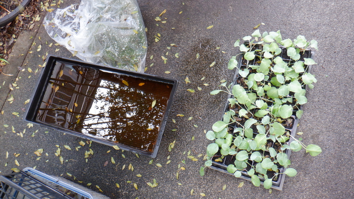 家の北側に置いてあるブロッコリの苗は