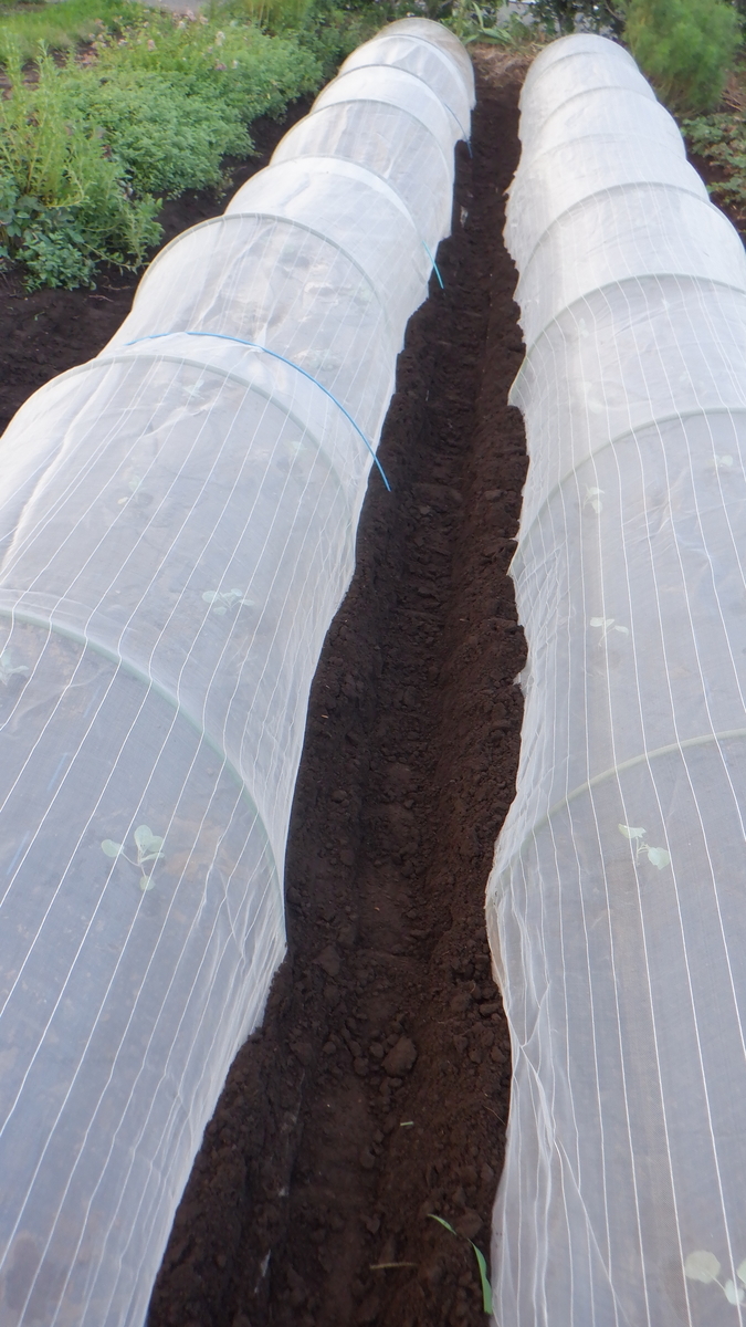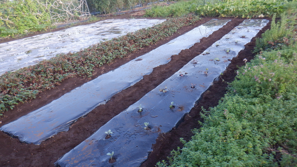 隣の畝には 手前からスティックセニョール5,カリフラワー5,