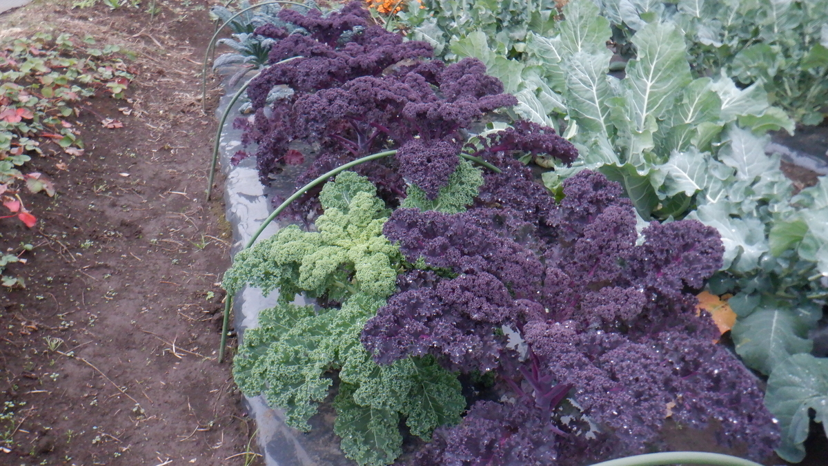 この、建設中の家の反対側にある芽キャベツやケールを