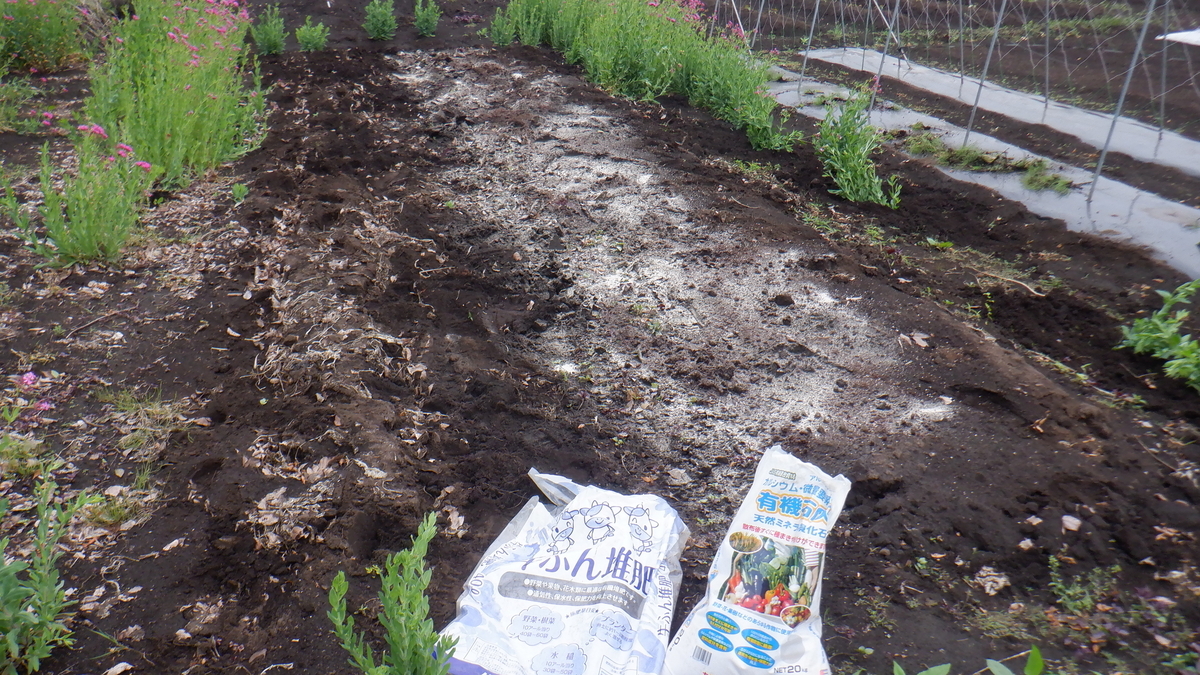 貝石灰と牛糞を入れ耕しました