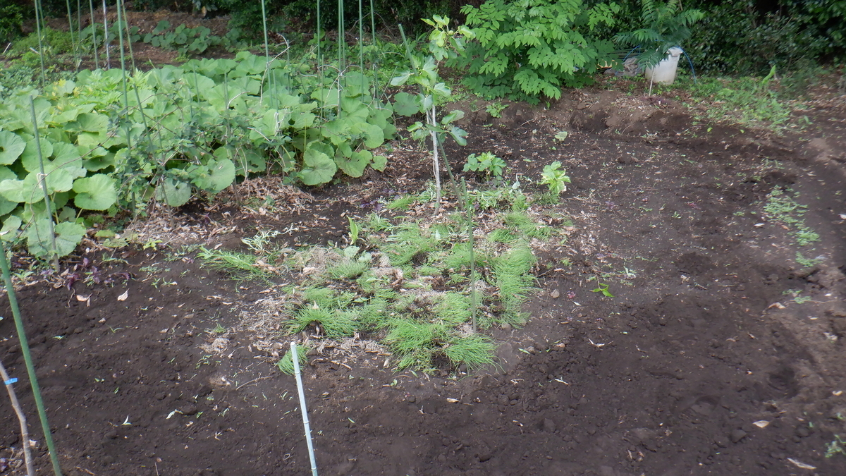 ここは去年 冬瓜やかぼちゃがうまくできなかった場所です