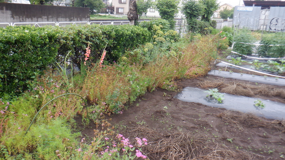 北側の生垣沿いでは ムシトリナデシコがほぼ終わり