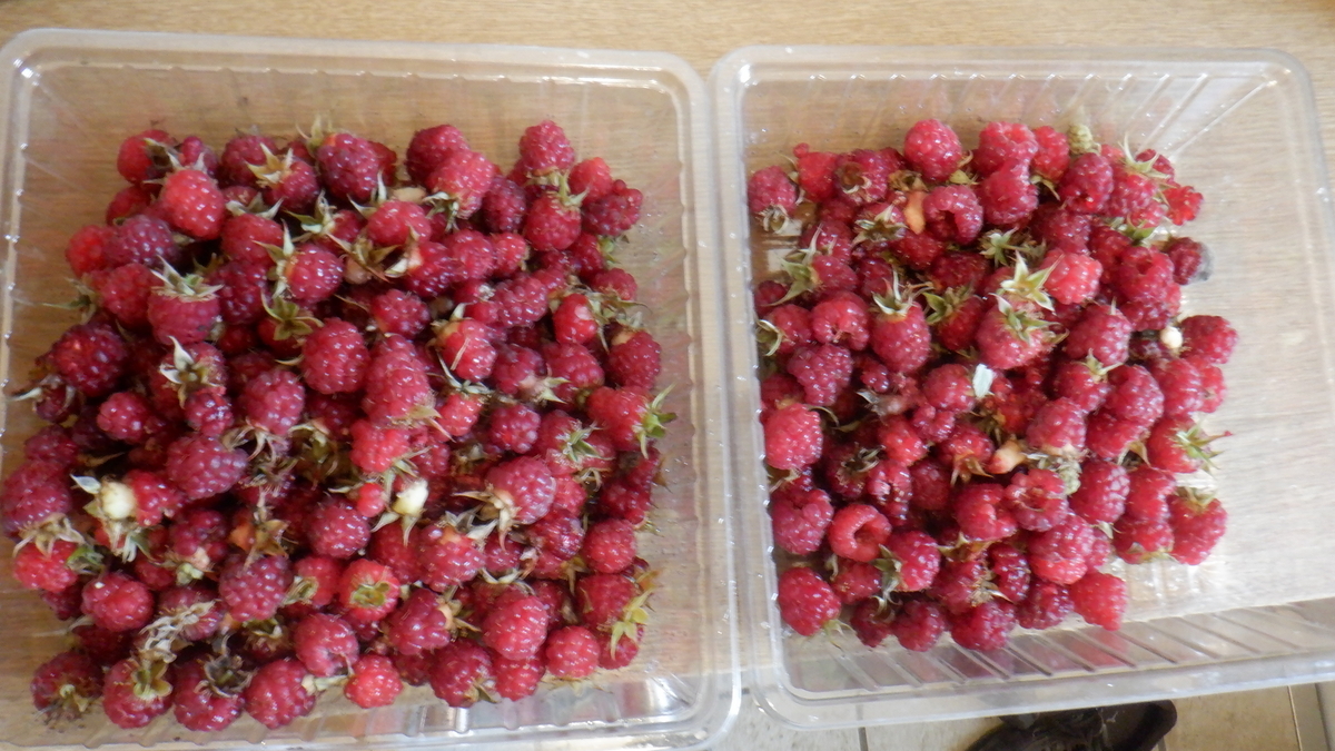 左側のラズベリーは 熟れすぎた実がいっぱいついています