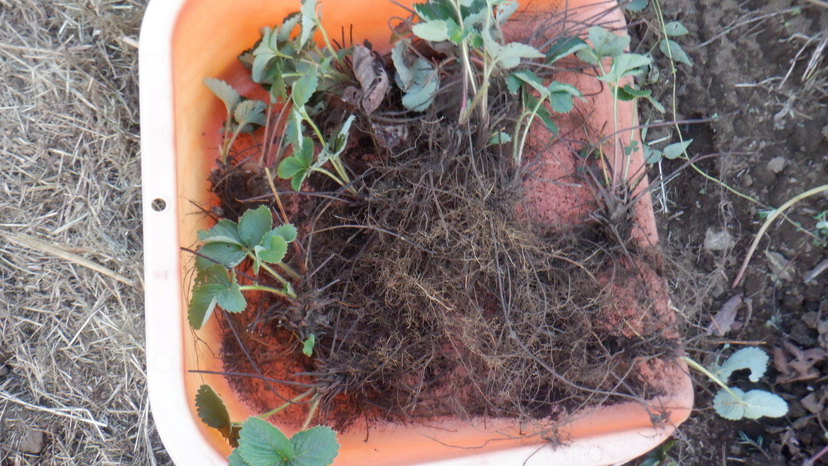 しかも 引き抜いたイチゴは みんな根っこが茶色くて