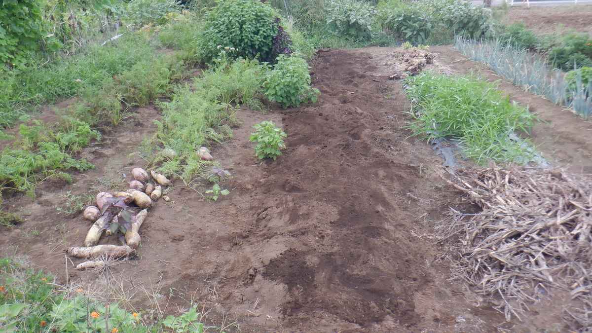 そこで まずは引き抜いたイチゴの植え付け場所を作ることにし