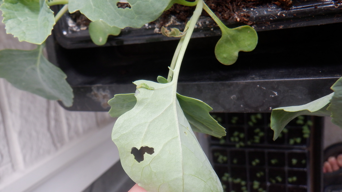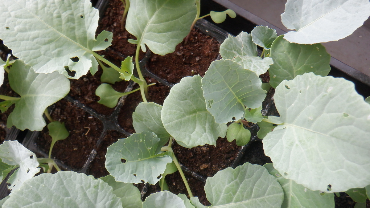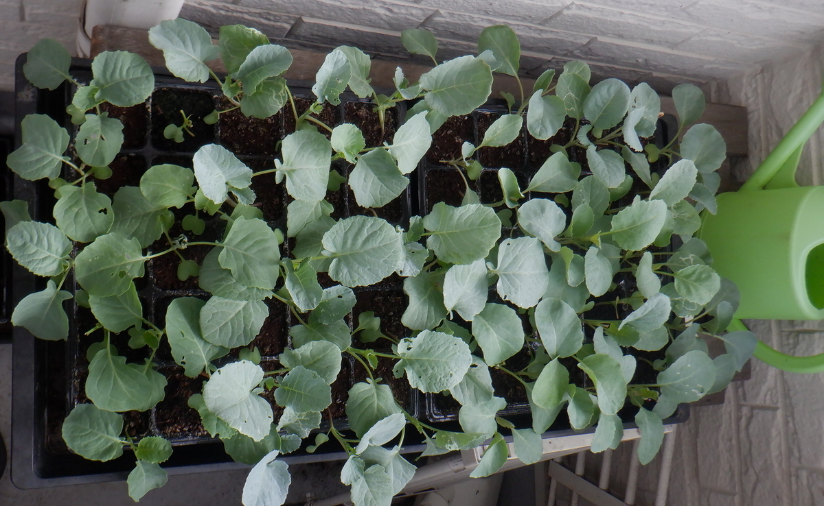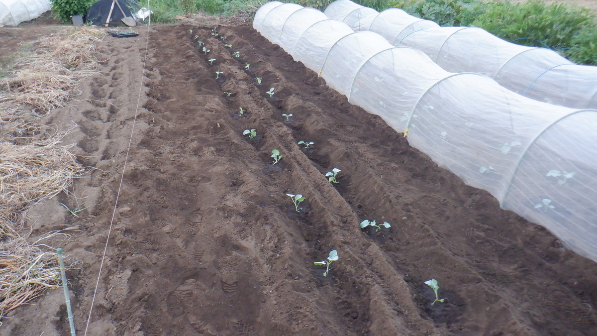 朝、第二期のブロッコリー類に 水やりをしようとしたら