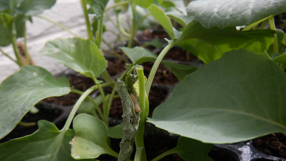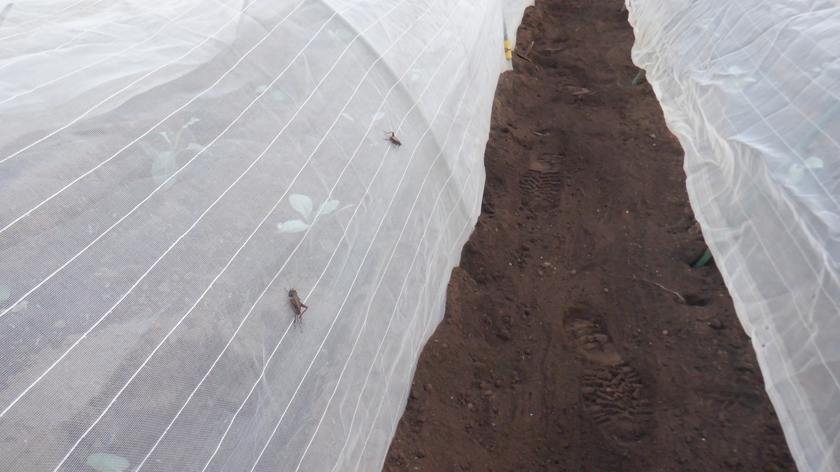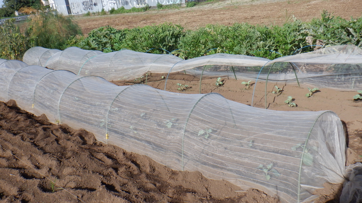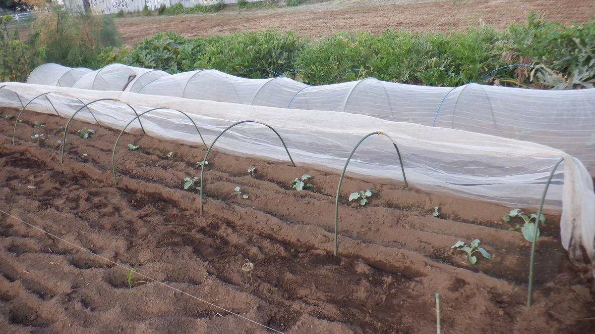 朝、第二期のブロッコリー類に 水やりをしようとしたら