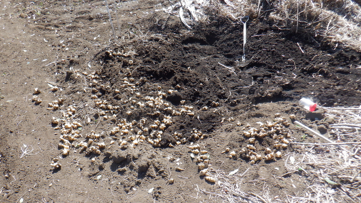 西砂川の畑では バケツの蓋が飛んでいました