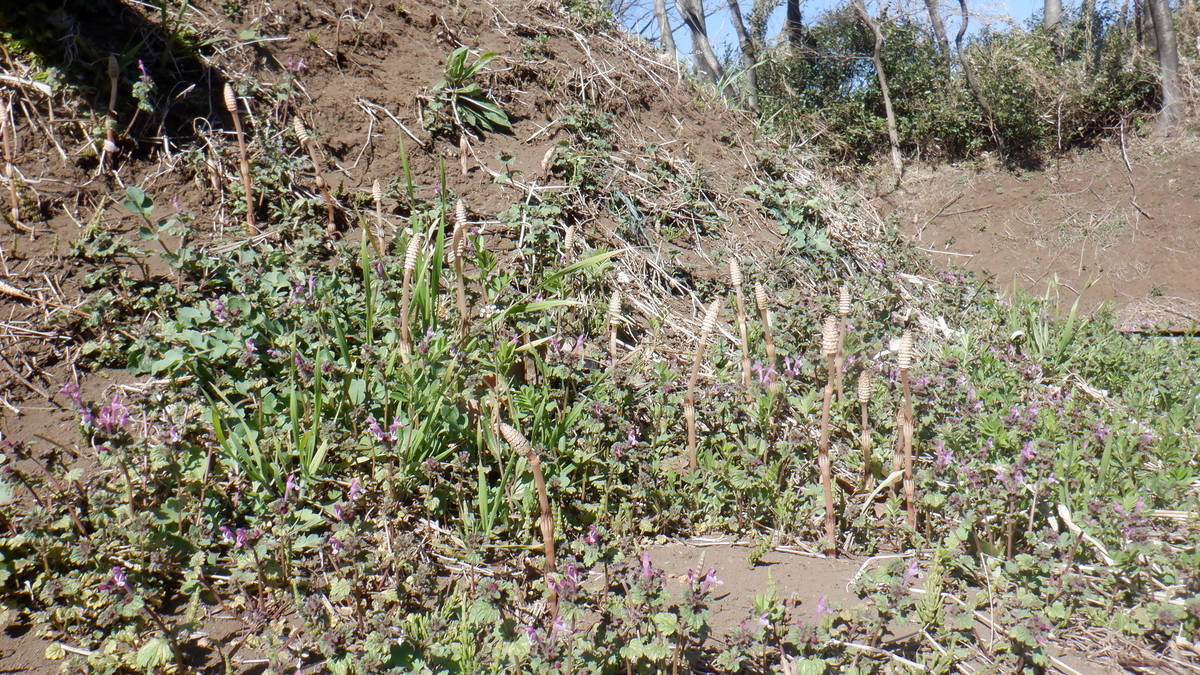 日当たりのいい斜面では、つくしがいっぱい出ています