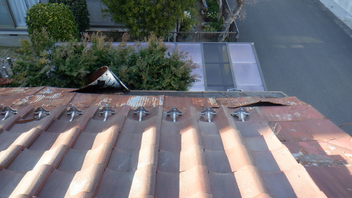 玄関の上の 屋根のトタン板もはがしてくれたのですが