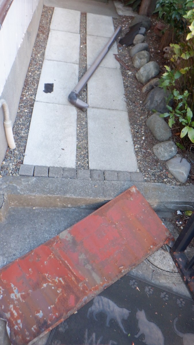 雨どいもへし折られていました