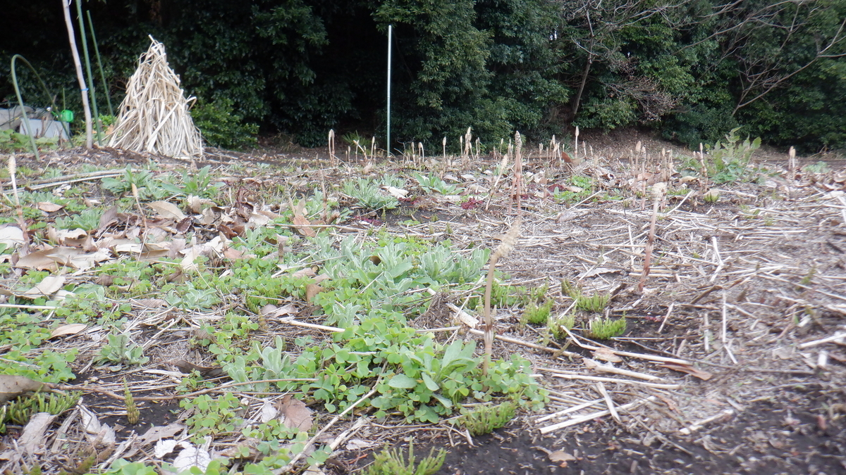 左の奥の方では つくしがいっぱい出ています