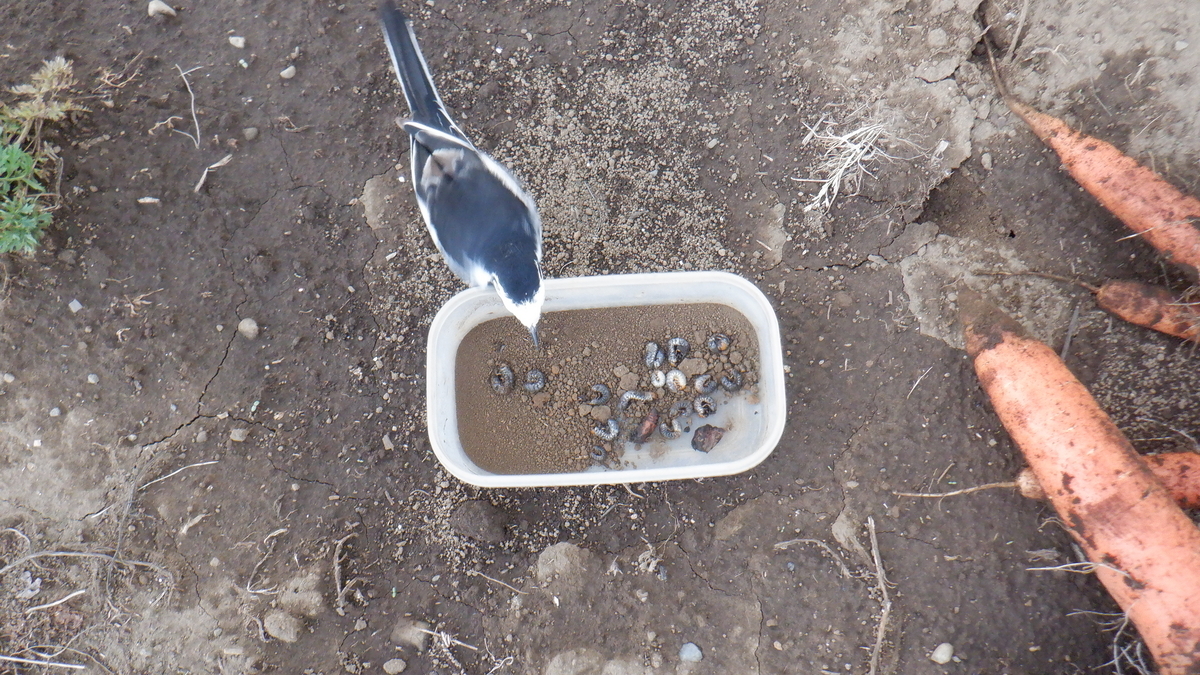 蛾の幼虫だけ食べて コガネムシは完全無視されました