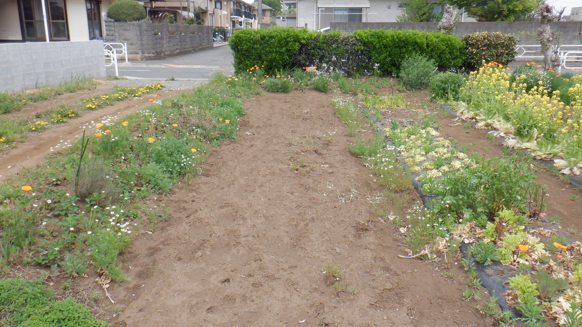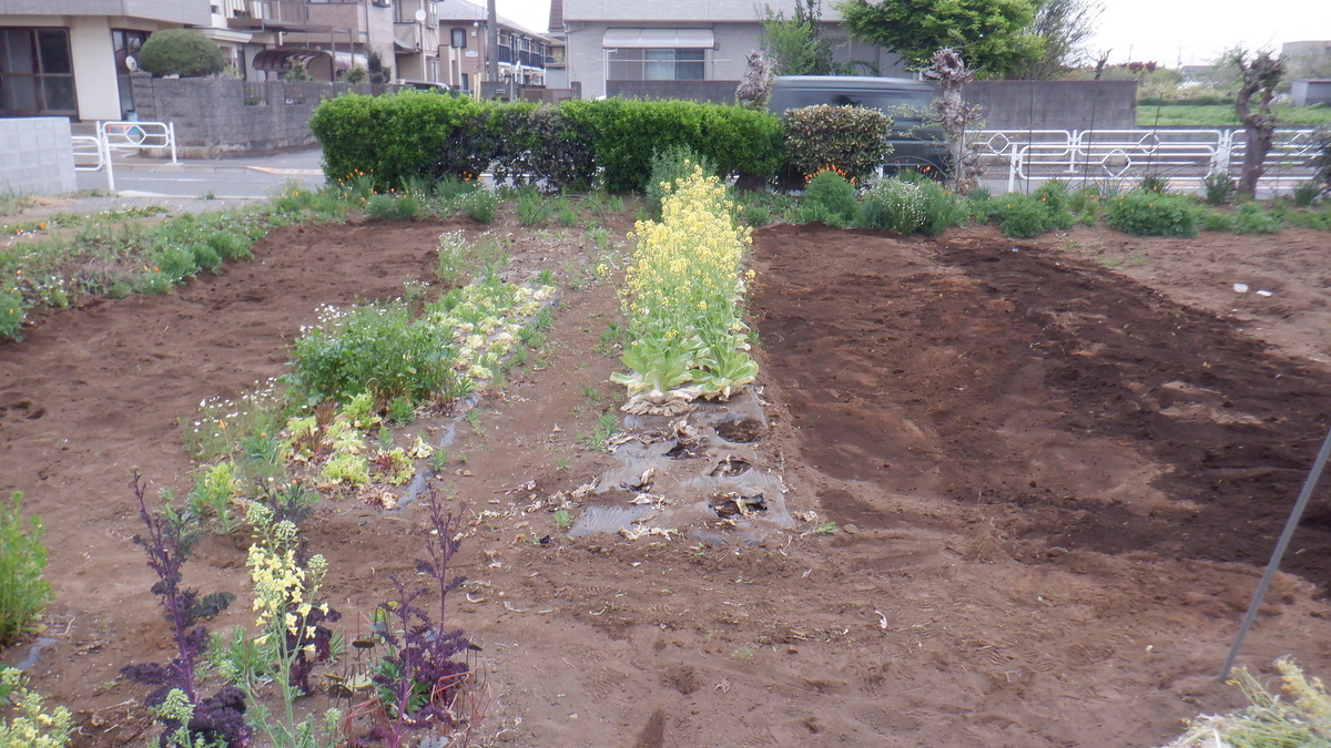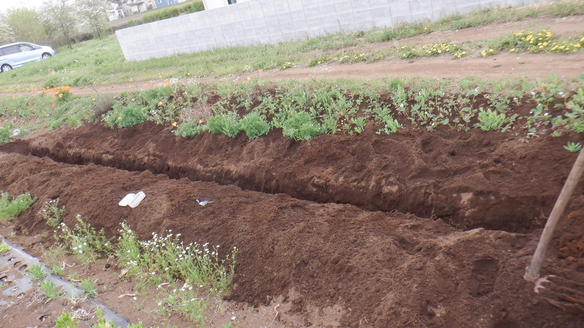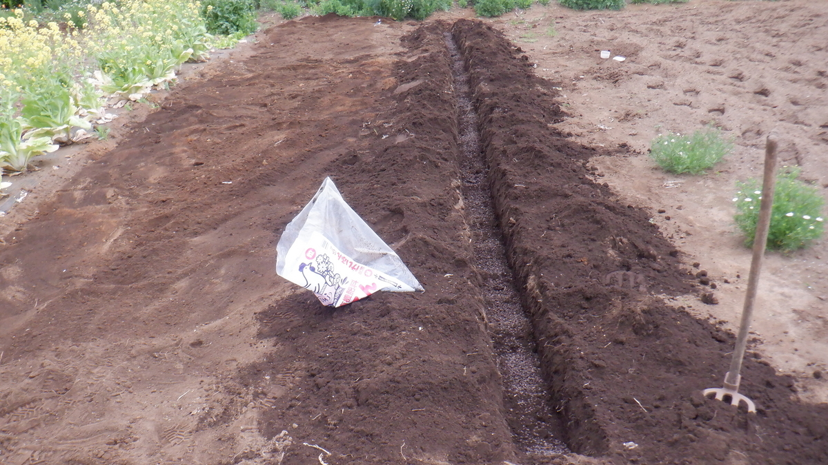 真ん中の2列は第2陣用で 苗が育つまでに作ります