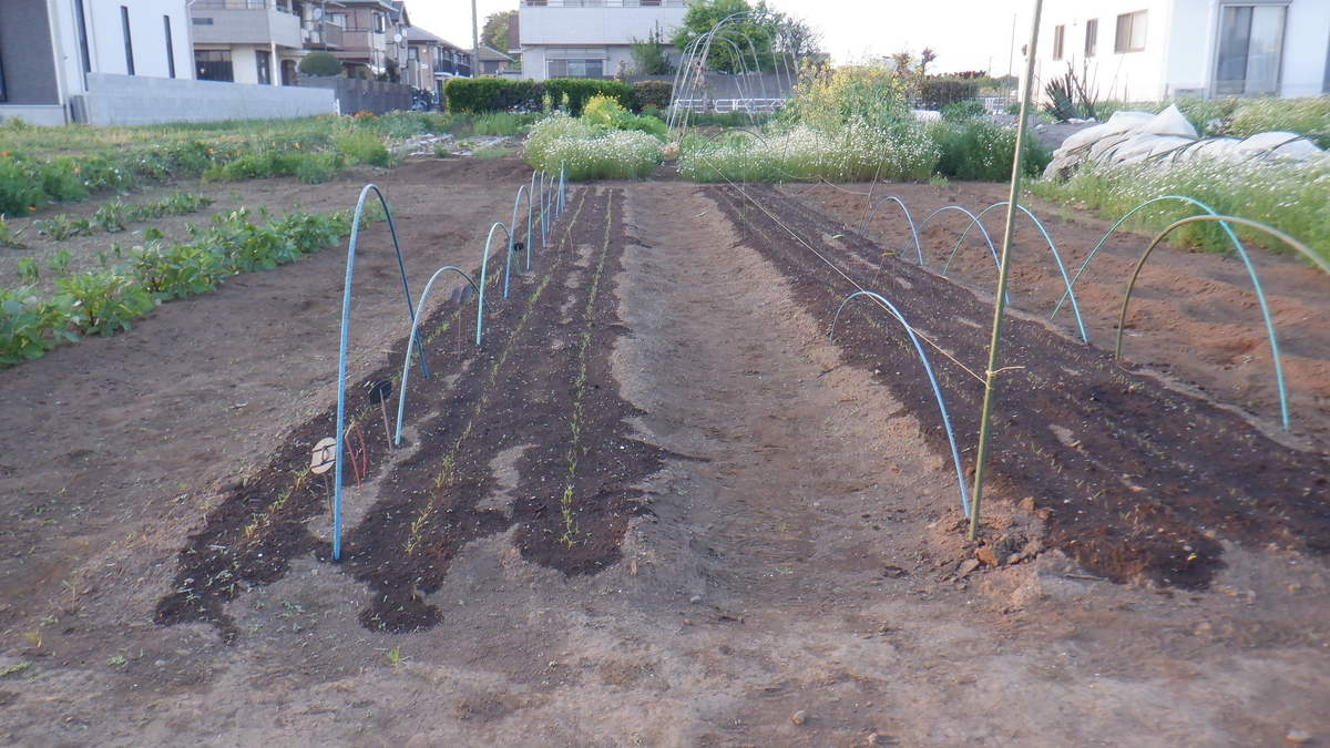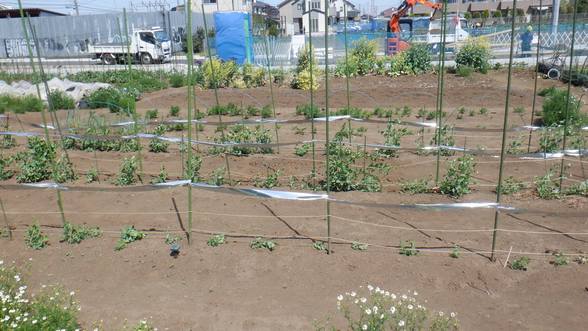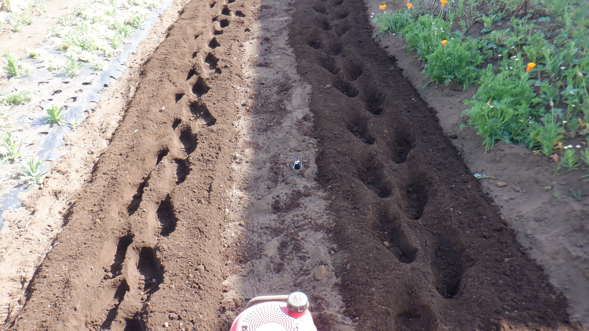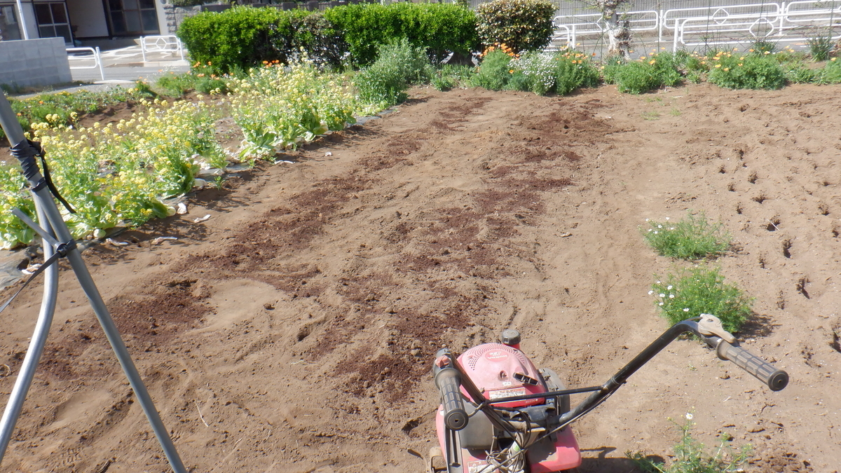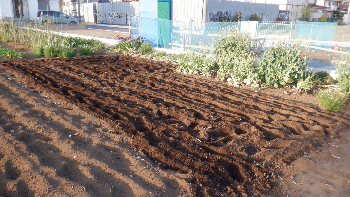 昨日 元肥を入れたトマトやナスの場所に