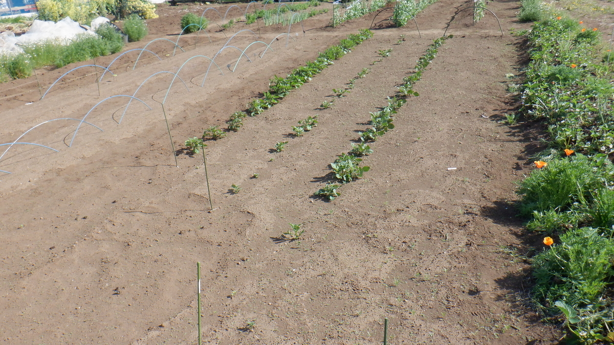 東側イチゴの 鳥よけに置きました