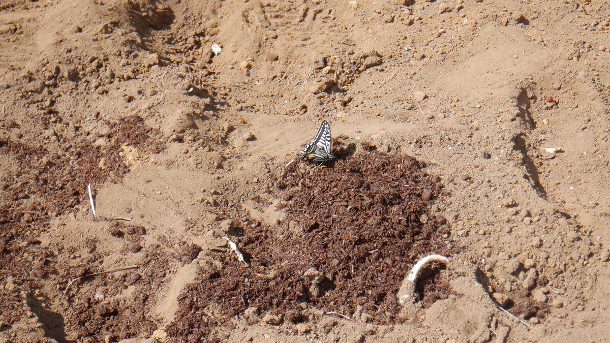 牛糞に アゲハ蝶が来ています