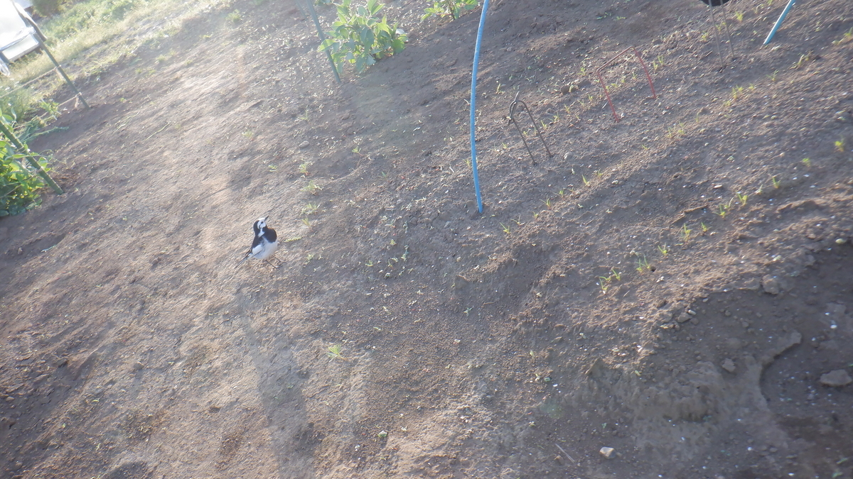 小鳥が「おじさん ニンジンに水まいた方がいいよ」と