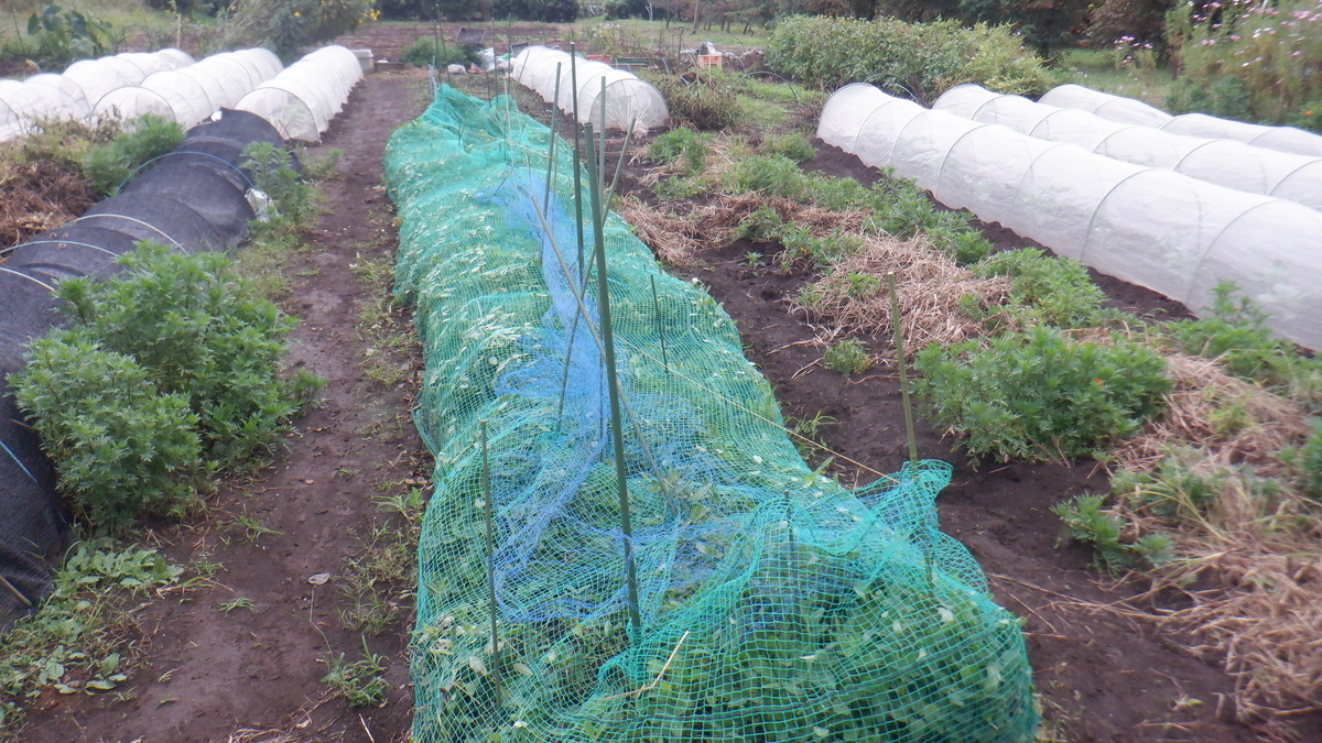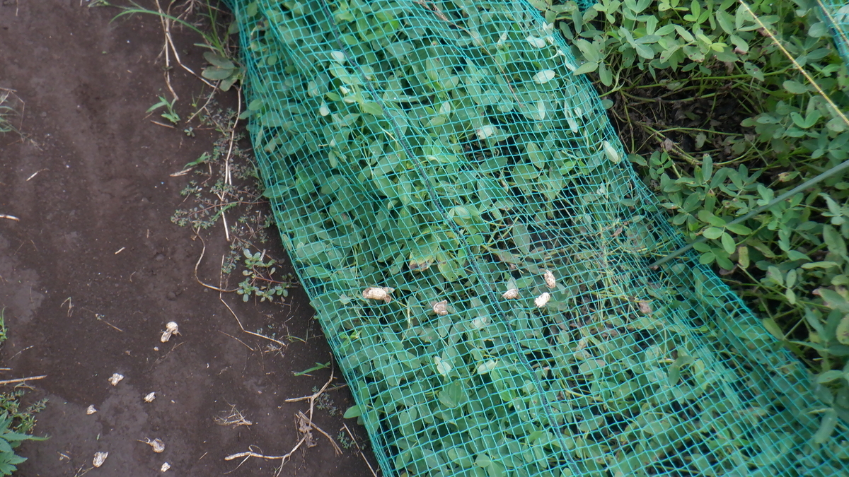 すると、緑のネットをしてある落花生が